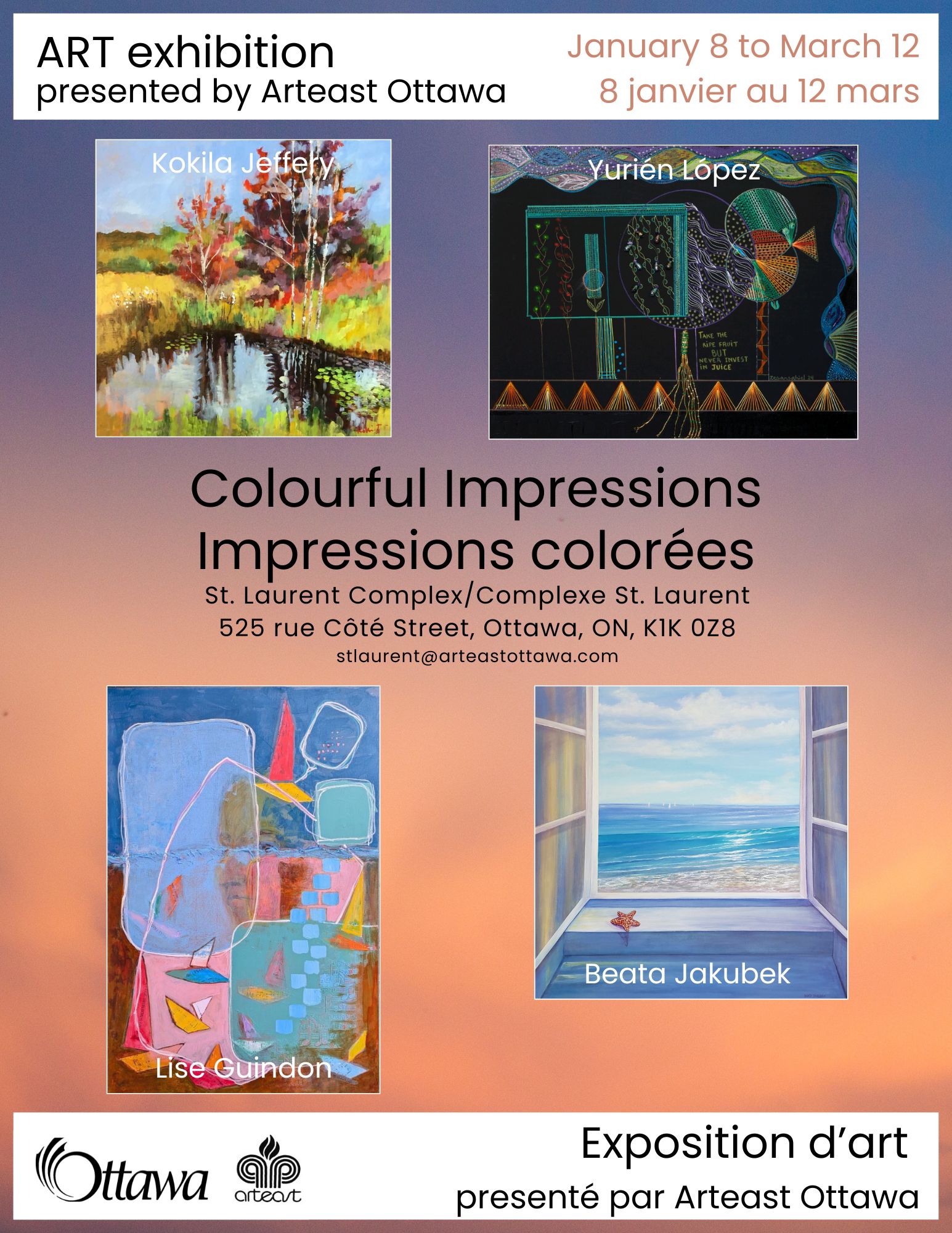 Arteast Ottawa gratefully acknowledges the financial support of the City of Ottawa. / Arteast remercie chaleureusement la ville d’Ottawa pour son soutien financier.