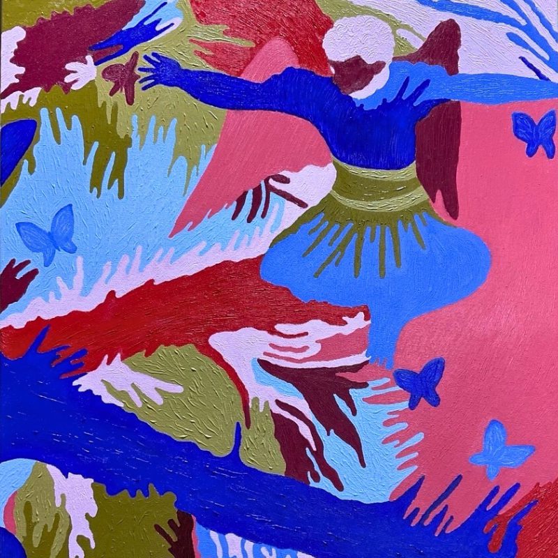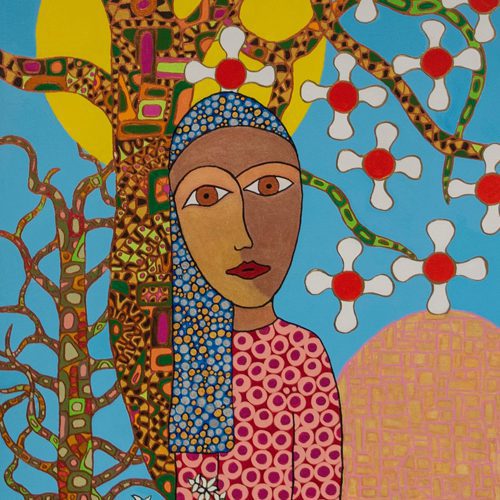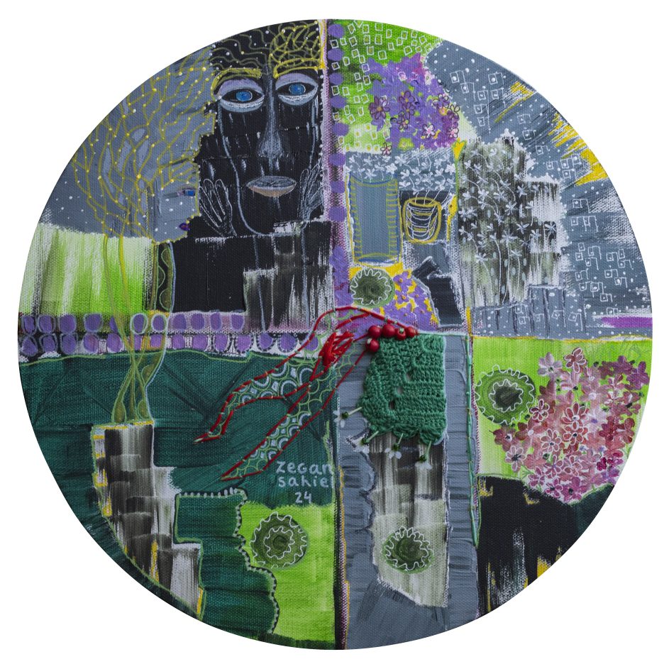 Acrylic, hand stitch, embroidery, mixed media