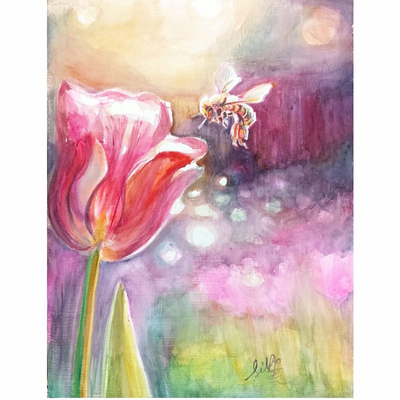 Mixed watercolour and gouache on wood